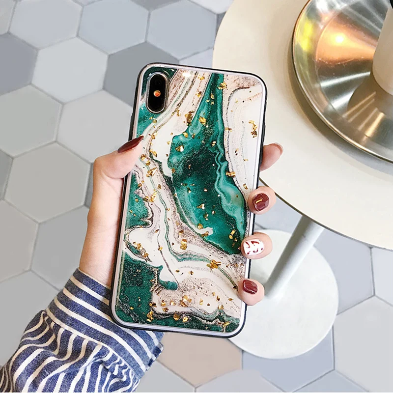 Best Fashion gold foils agate marble Case for iphone X XR XS XS Max Shiny soft silicone case for iphone Flash Deal